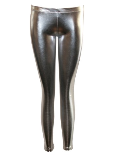 Silver Shiny Liquid Leggings Full Length, 1 Inch Elastic Waist Band