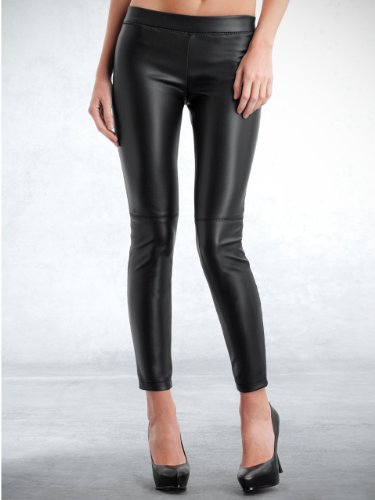 As Seen In InStyle Magazine Bring enticing edge to any look with this second-skin faux-leather legging. Team it with textured knit tops and sexy high heels for daring cold-weather style. Legging features an elastic waistband and exposed stitching throughout. 60% Polyester, 40% Polyurethane Hand wash Apparel > Bottoms > Leggings