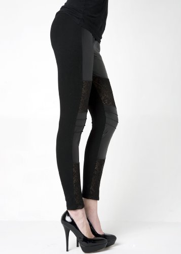 2 panels of floral mesh lace are found above the knee and at the ankle. A series of pintucks at the knees and a back panel of black knit material complete the look.